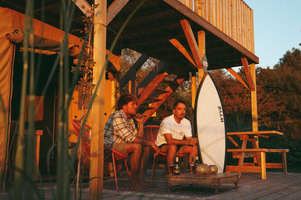 Na het surfen wil je natuurlijk helemaal tot rust komen. Dat kan in onze comfortabele glampingtenten, volledig ingericht met bedden, een keuken en een eigen terras. Zo combineer je het stoere buitenleven van een surfvakantie met de luxe en het gemak van glamping.